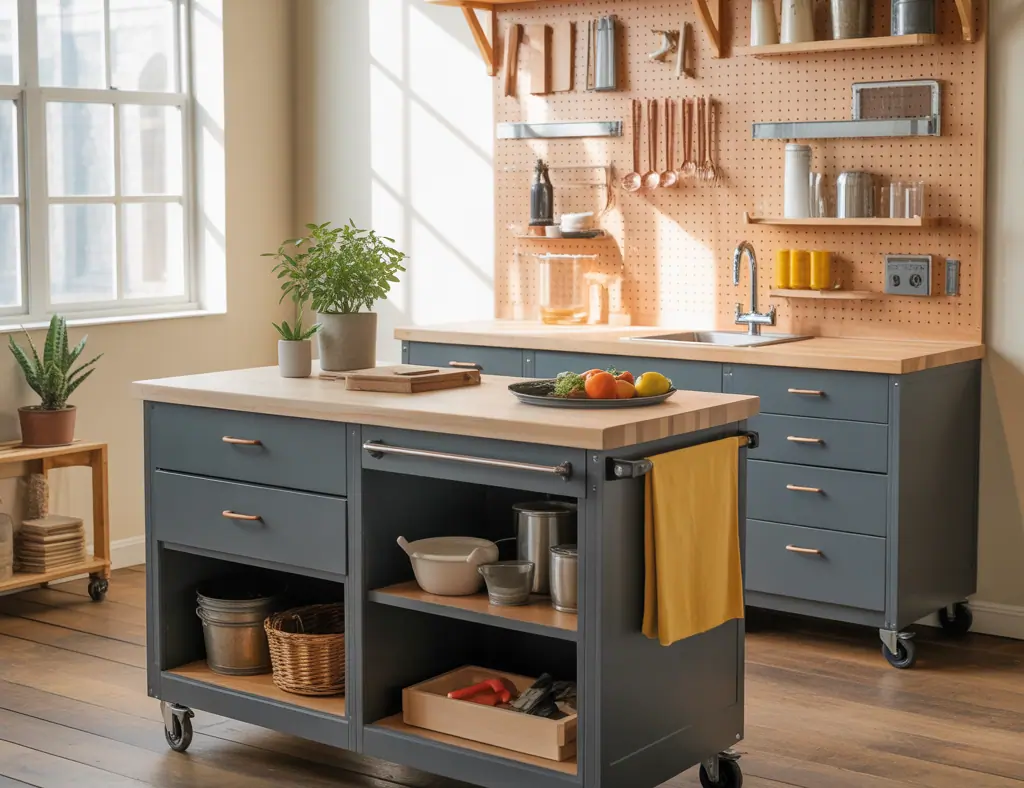 On a budget, use reclaimed wood, a used dresser, or a pre-made kitchen cart topped with a laminate slab. For a premium mobile island, invest in a thick butcher block, soft-close drawers, and industrial casters. Either approach can look intentional—finish and hardware make a huge difference.