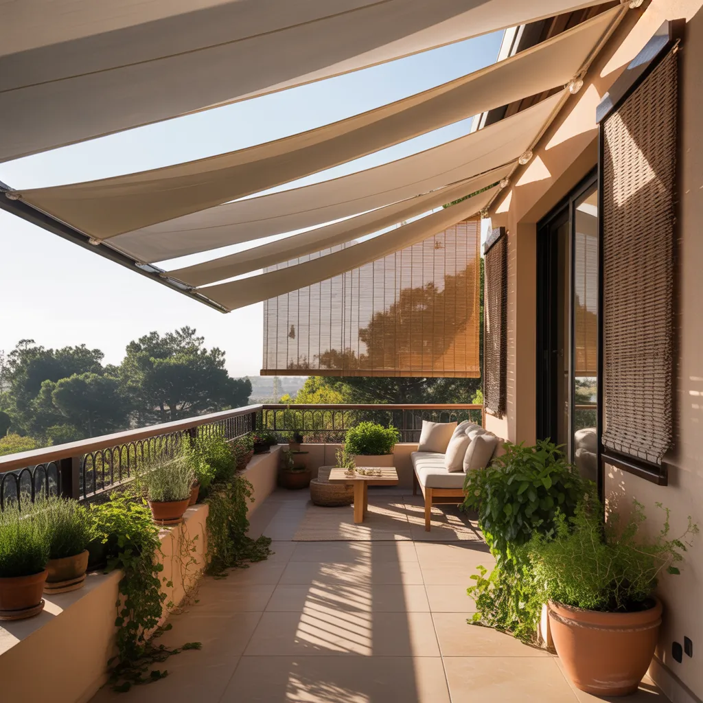 Shade sails are triangular or rectangular fabric panels stretched between anchor points. They’re great for small and irregular balconies because they can be tensioned to fit odd corners.