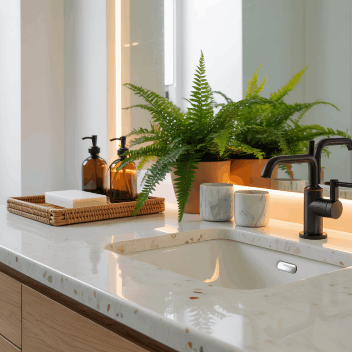 Decorating your bathroom countertop isn’t just about looks. Thoughtful styling increases functionality, reduces morning stress, and elevates the overall feel of your space. A well-organized, attractive counter helps you keep essentials accessible while making cleaning easier — and it can boost resale appeal if you’re planning to sell.