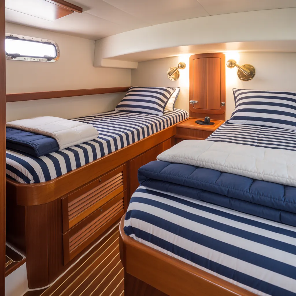 Boat cabins present unique challenges—unusual mattress shapes, limited space, high humidity, and exposure to salt and sun. Start by considering these design priorities: