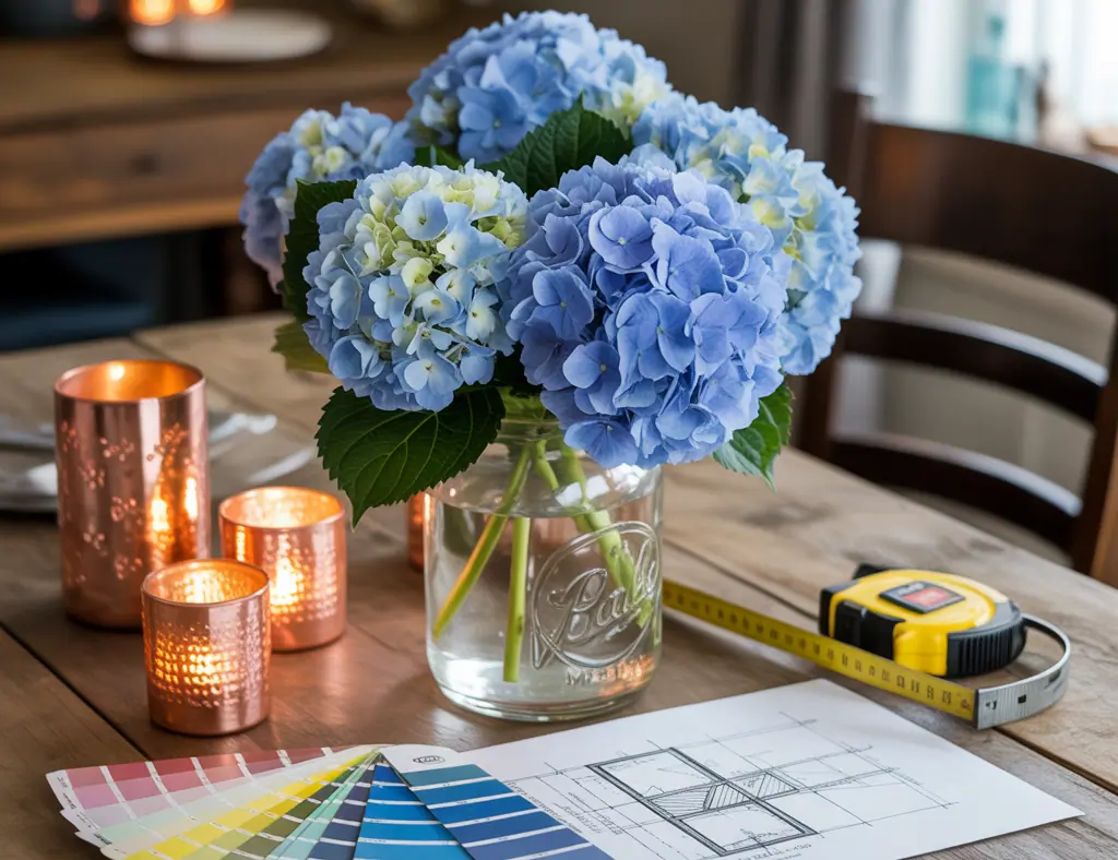 Blue hydrangea centerpieces are ideal for dining tables, coffee tables, entry consoles, and mantel displays. They’re also perfect for seasonal events—summer lunches, baby showers, engagement parties, and relaxed weddings. Want more styling inspiration? Check out our home design ideas and browse hands-on projects on our DIY projects page for complementary tips.