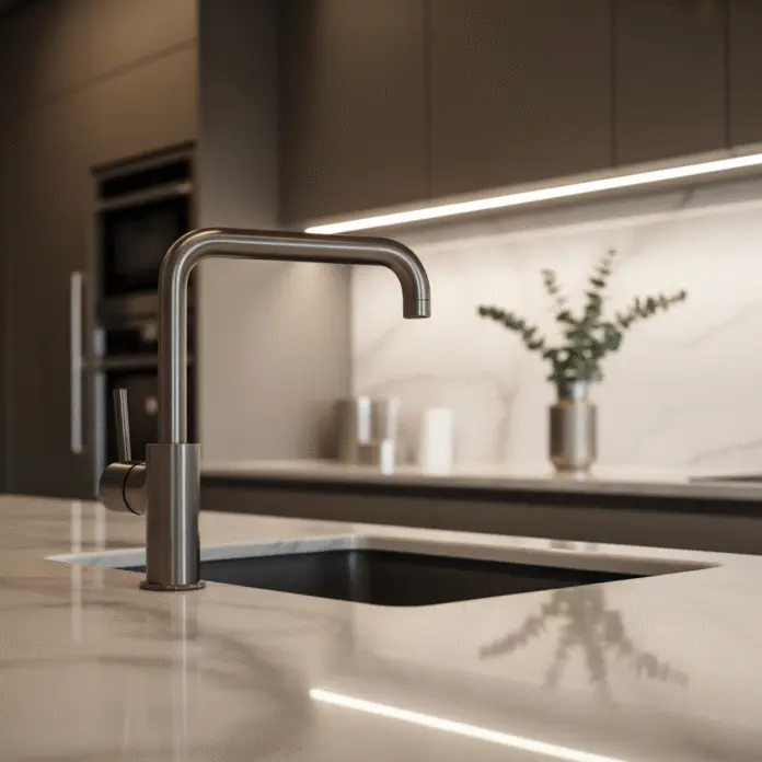 Luxury is in the details. Incorporate high-quality materials like marble countertops, hardwood flooring, or sleek quartz surfaces. These durable, refined finishes automatically elevate the overall aesthetic, making your kitchen feel more polished and hi-end.