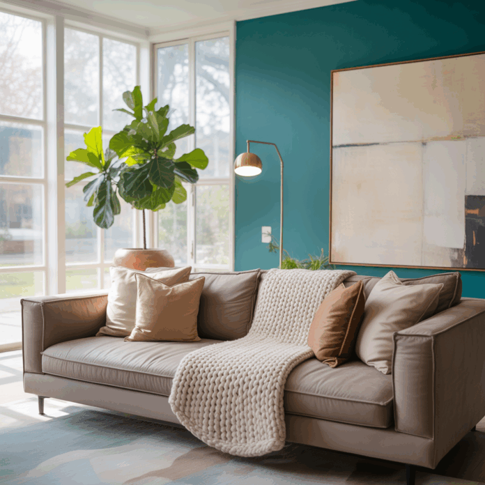 A trendy accent wall is one of the most impactful ways to add personality and visual interest without overpowering the room. Consider painting one wall in a rich jewel tone like emerald green or navy blue, or try peel-and-stick wallpaper with geometric prints for an easy, damage-free option.