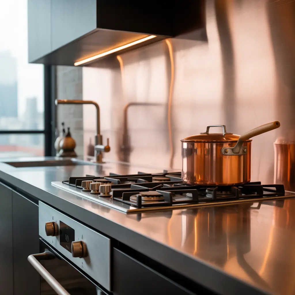 Thinking beyond just the backsplash? Incorporate copper details into your kitchen decor with copper pendant lights, hardware, or even decorative bowls. For a full cohesive look, explore our article on modern kitchen designs with metallic accents for more inspiration.