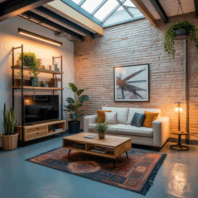 - Materials: reclaimed wood, metal, concrete-look finishes, exposed brick