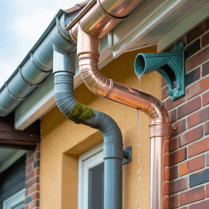 Add ornate downspout covers, scrollwork, or custom metalwork in copper or powder-coated steel to transform a plain pipe into architectural detail. Scuppers and troughs can also redirect water horizontally into a design feature.