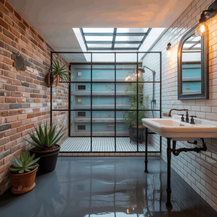 - Industrial Chic: Exposed metal accents, concrete-look tile, and matte finishes to echo the garage origin.