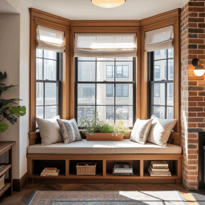 A built-in bench is the classic bay window upgrade. It provides seating, storage, and a focal point.