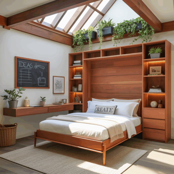 - Install a secure loft bed or bunk system with guardrails and proper ladder anchoring.