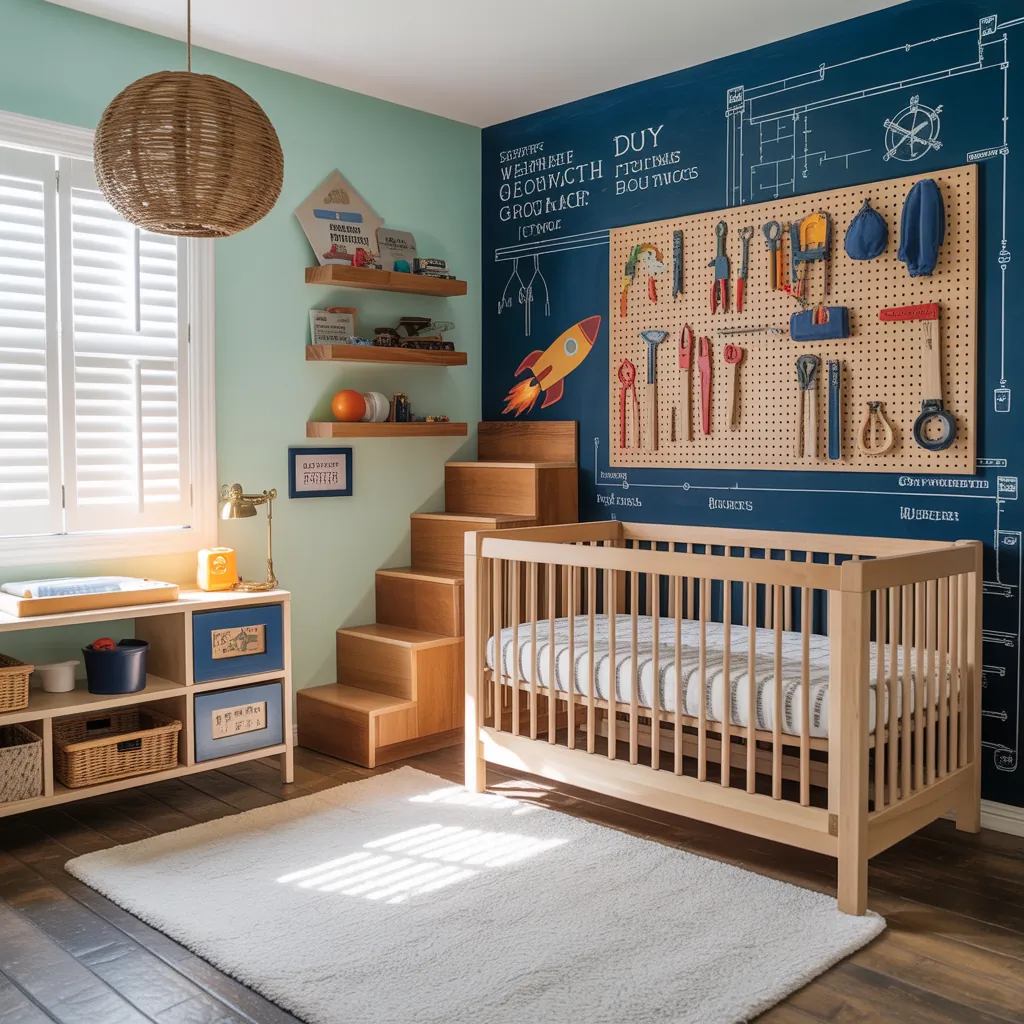 - Nautical nursery: Navy, white, and natural wood. Add anchor motifs, striped textiles, and rope accents for a classic coastal feel.