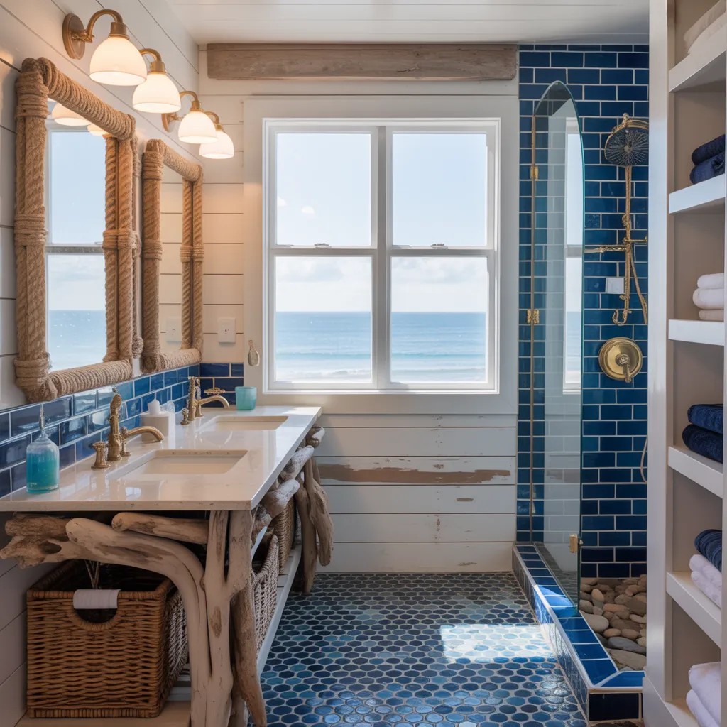 - Add sea-glass decor, driftwood shelves, or framed coastal prints for personality.