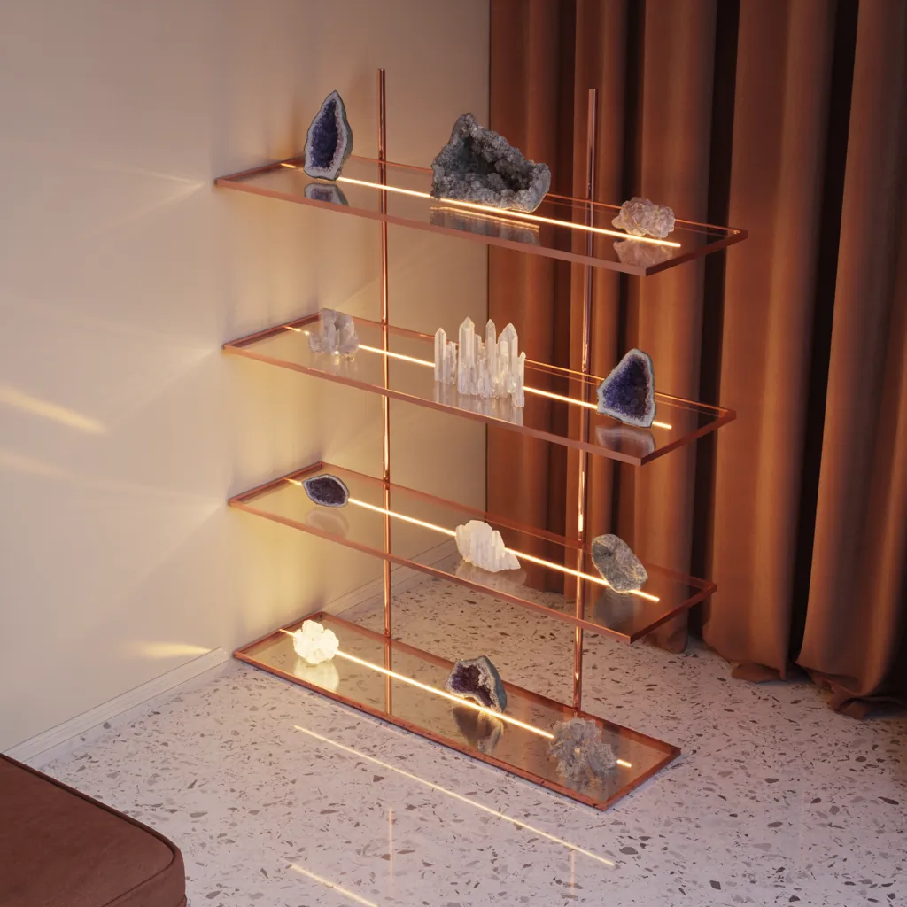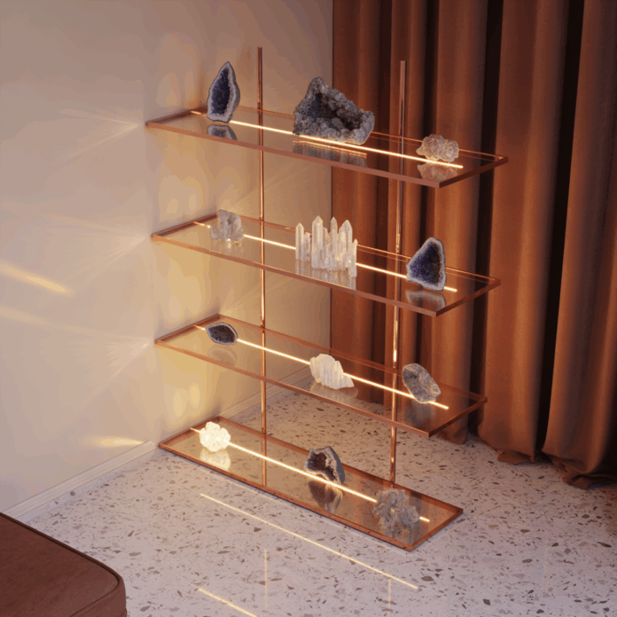If you’re renovating a wall, add a recessed niche with shelves and concealed LED lighting. This creates a permanent, museum-style crystals display that’s perfect for large pieces.