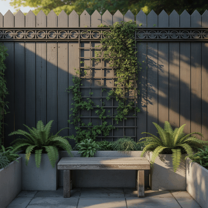 - Install trellis panels or attach planters to a dark grey fence to make plants pop—ivies, ferns, or bougainvillea look stunning against charcoal.