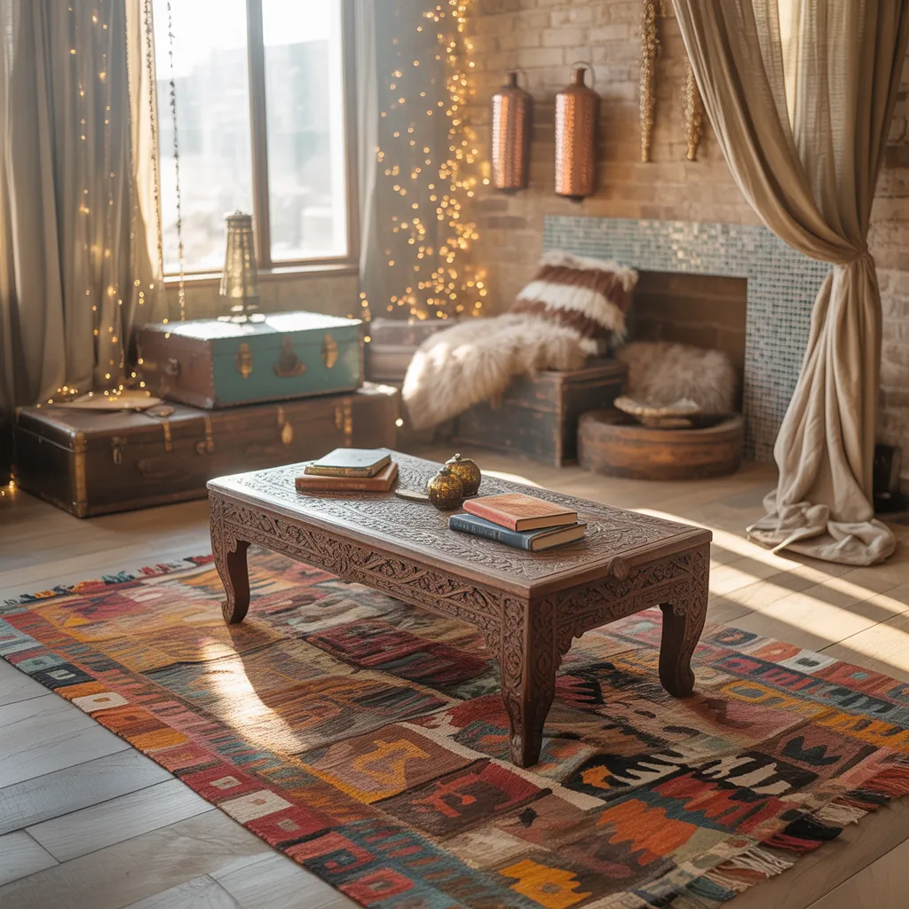 The palette and textiles are what make gypsy décor feel vibrant. Think saturated jewel tones, warm earth tones, and pops of metallics. Textiles are your main tool—kilims, ikats, embroidered fabrics, and kilim runners add richness.