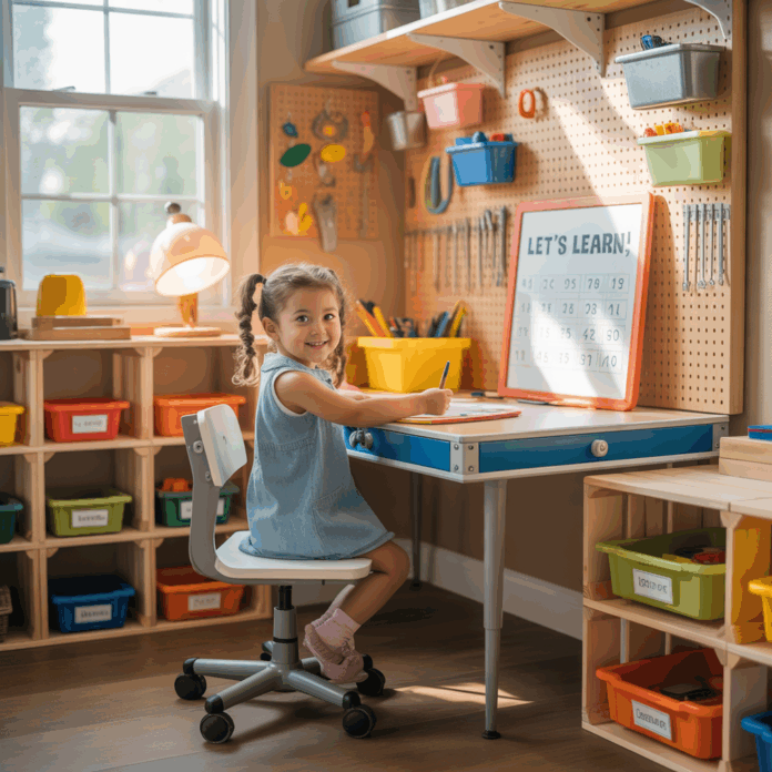 Choose a cohesive look that fits your home: Scandinavian minimalism for calm, cottage-core for cozy creativity, or modern industrial for an energetic, tool-friendly room. Small touches — like matching baskets, a statement light fixture, or framed student artwork — turn a functional area into a space kids are proud to use. For hands-on projects and furniture ideas try browsing our DIY projects and home design ideas pages for step-by-step inspiration.