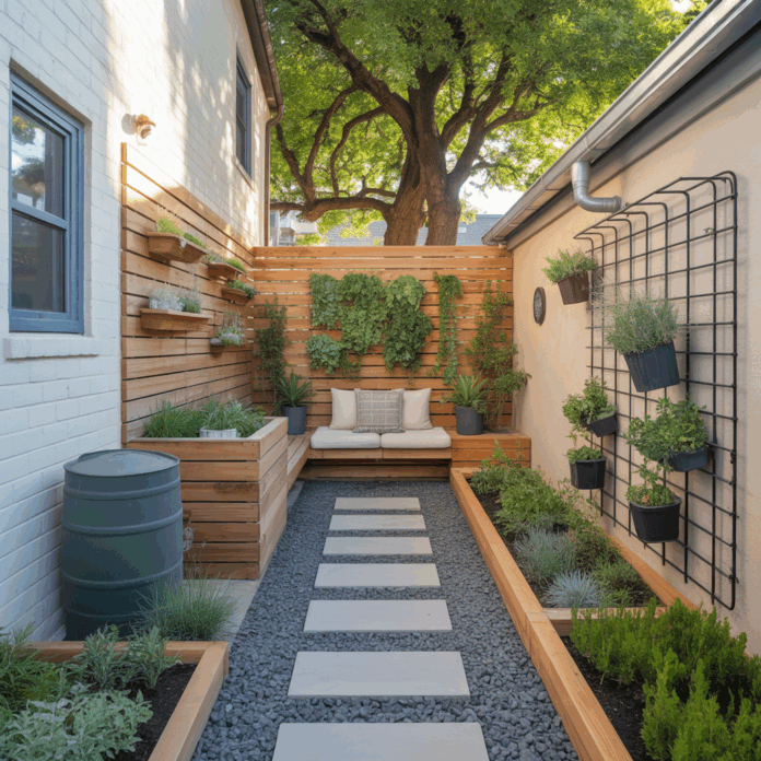 Before you dig or buy materials, take ten minutes to evaluate the space. Measure width and length, note sun and shade patterns, check soil drainage, and consider access points (gates, HVAC units, meters). This small planning step avoids costly mistakes and guides whether you choose gravel pathways, native plants, or raised planters.