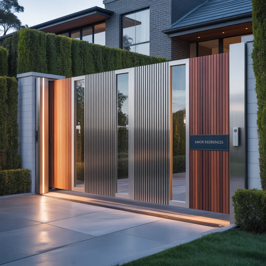 - Pivot gates: A dramatic designer option—a single pivoting panel can be a focal point for contemporary architecture.