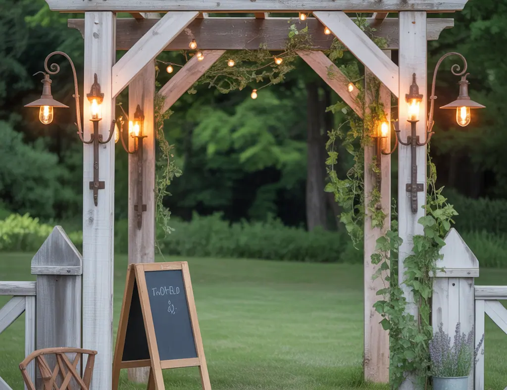 - Lighting: String fairy lights along beams or tuck LED candles into mason jars hung from the arch for evening ceremonies.