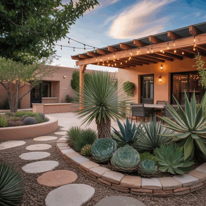 Imagine a front yard with a decomposed granite walkway, a cluster of purple salvias and silver-leaf shrubs, a small native oak for shade, and a seating nook with potted succulents. Accent lights along the path and a drip-irrigation timer set to early morning create a welcoming, low-water façade that stands out in the neighborhood.