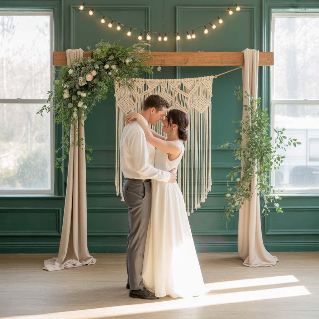 - Fabric Drape Wall: Use a tension rod and layered fabric to instantly create a soft, elegant backdrop behind the couple.