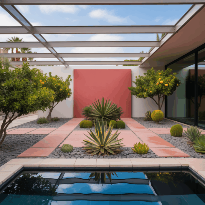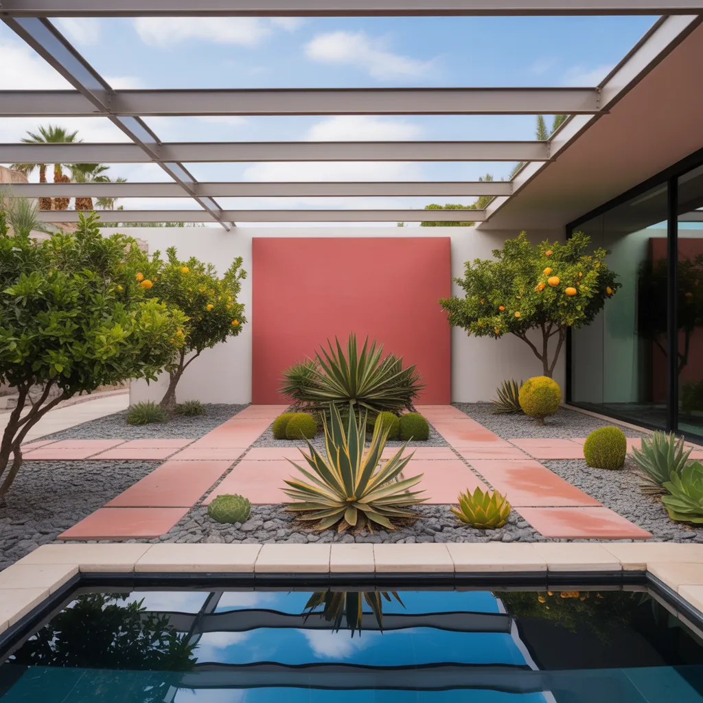 Design tip: install a low, linear planter parallel to your pool or patio to echo mid-century proportions. Combine warm wood seating with cool concrete for balance.