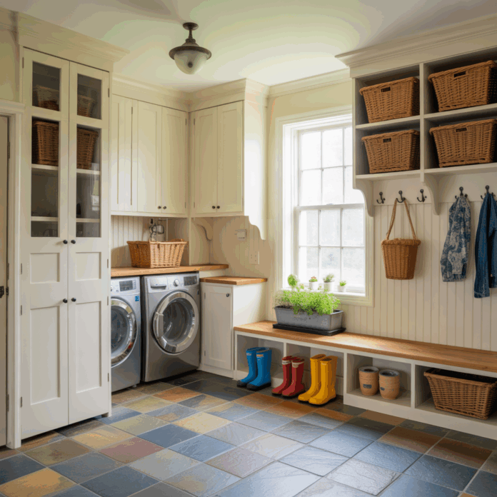 A practical laundry in mudroom is not just about looks — it must stand up to dirt, wetness, and frequent use.
