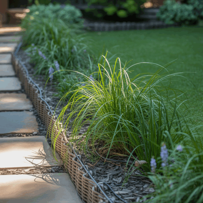 - Finish with edging: Add a low physical edging (stone, steel, or wood) if you want a very crisp look and to prevent grass encroachment.