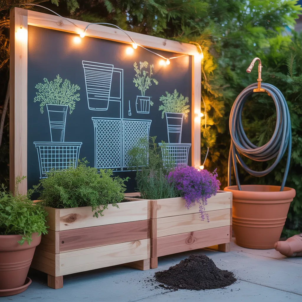 - Kitchen garden: raised planters and window boxes for herbs and vegetables.