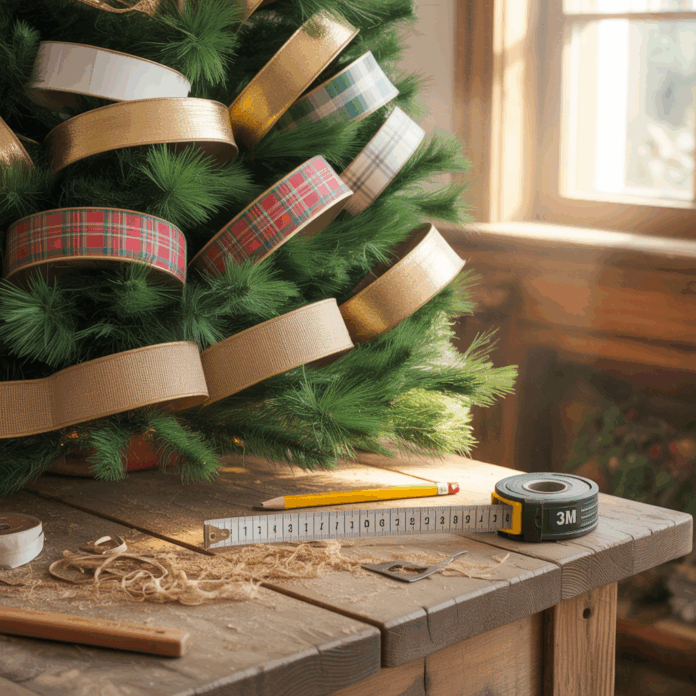 - Measure the tree’s height; buy ribbon length equal to 4–6 times the height for a full wrap.