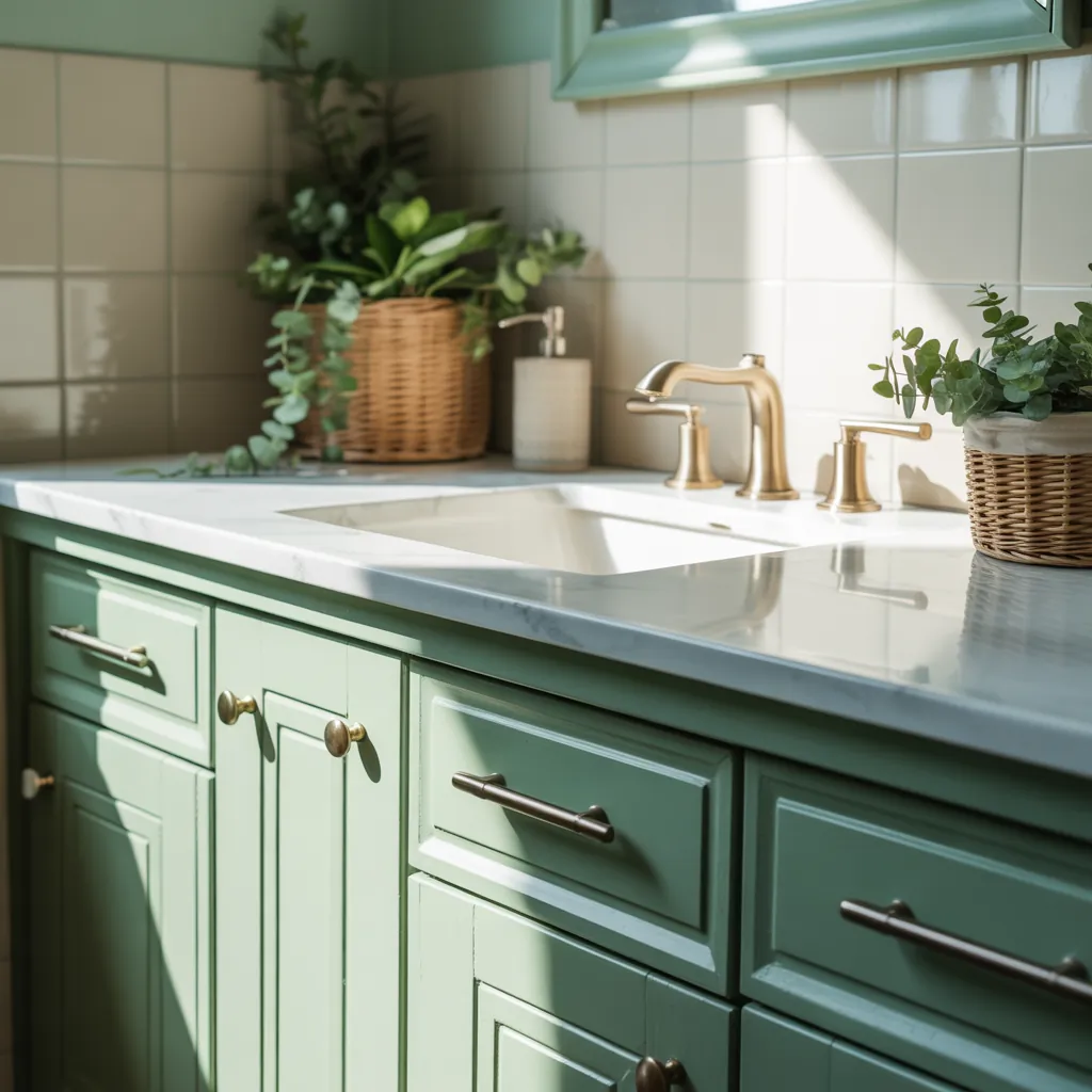 Tip: Test paint on a drawer front before committing to the whole vanity. Lighting can shift how a sage tone reads in your space.