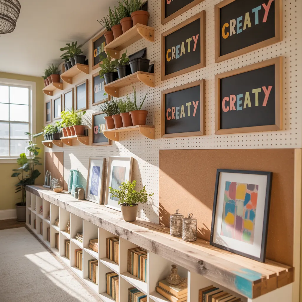 Install chalkboard or dry-erase panels for rotating lessons, weekly vocabulary, or family reminders. Magnetic paint beneath a regular finish creates a rotating gallery for student artwork or kids’ crafts.