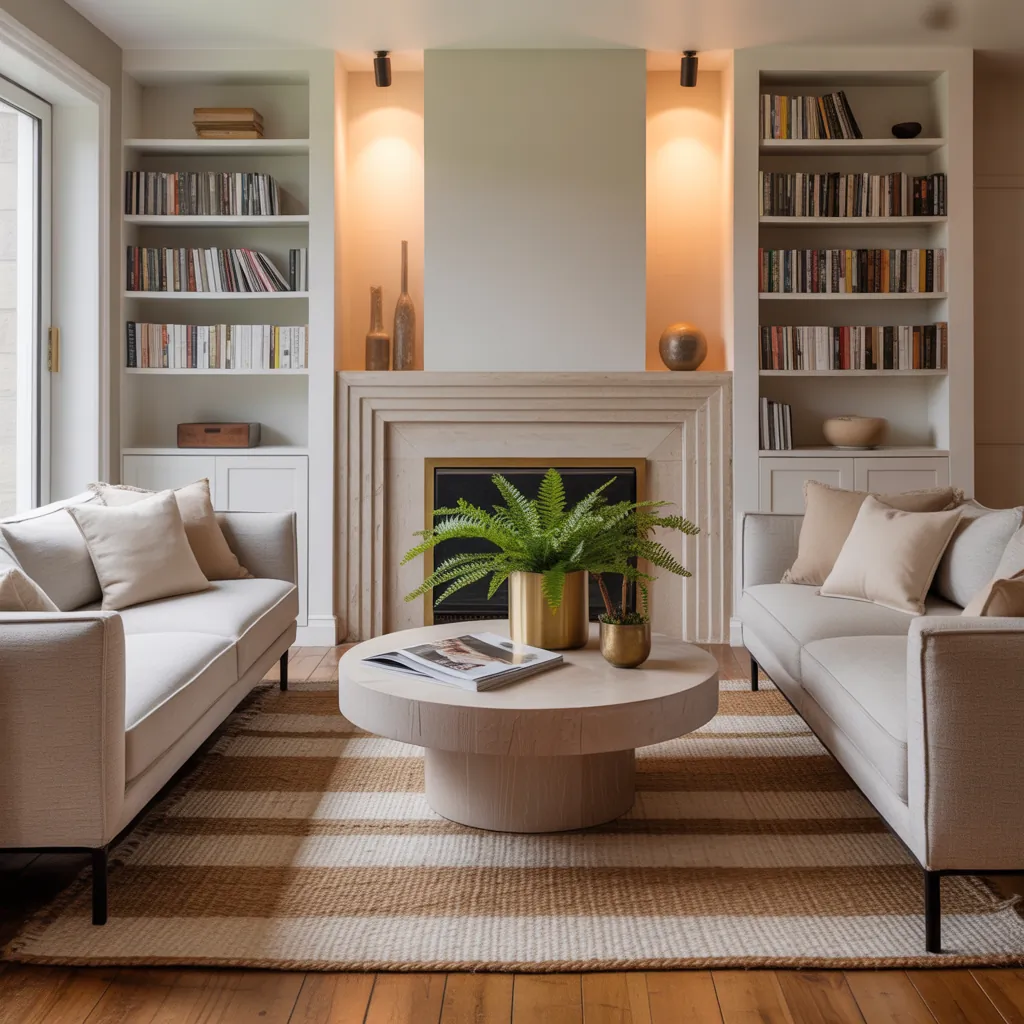- Contrast finishes: Use a wooden coffee table and metal side tables to add contrast and warmth.
