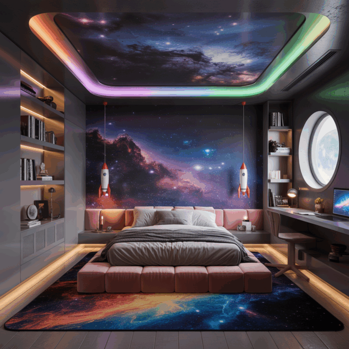 A space bedroom can be calming and imaginative while still feeling sophisticated. The right palette, lighting, and textures make it perfect for adults who love astronomy, sci-fi, or just want a fresh, atmospheric look. Benefits include: