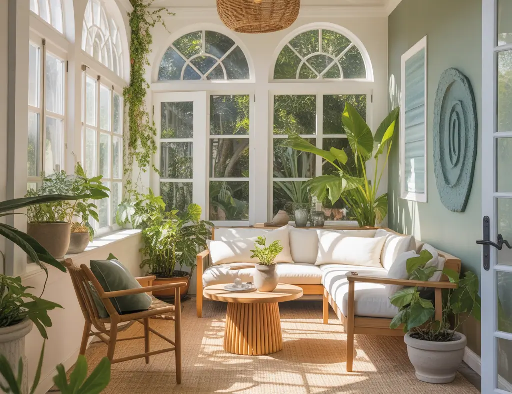 Light, cool tones like pale blues, soft greens, or warm whites make small sunrooms feel larger. Use a satin or eggshell finish to reflect light without harsh glare. Avoid very dark hues on all walls; instead, use them as accent colors.