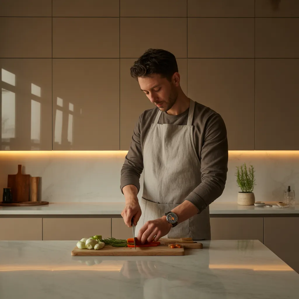 Lighting plays a crucial role in bringing warmth into your neutral palette. Use warm-toned LED fixtures, Edison bulbs, and under-cabinet lighting to cast a golden glow across your space. Think about incorporating pendant lights above the island with warm metallic finishes to make your kitchen both functional and atmospheric.