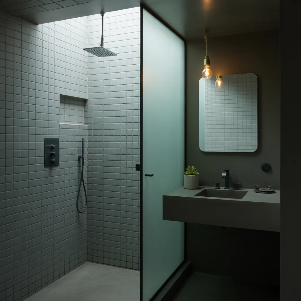 Opt for large-format tiles on the walls and floor—they create fewer grout lines and visually expand the space. Light hues like whites, creams, or soft grays keep the bathroom looking bright and fresh. For a touch of style, incorporate accent tiles or mosaics as a feature wall.