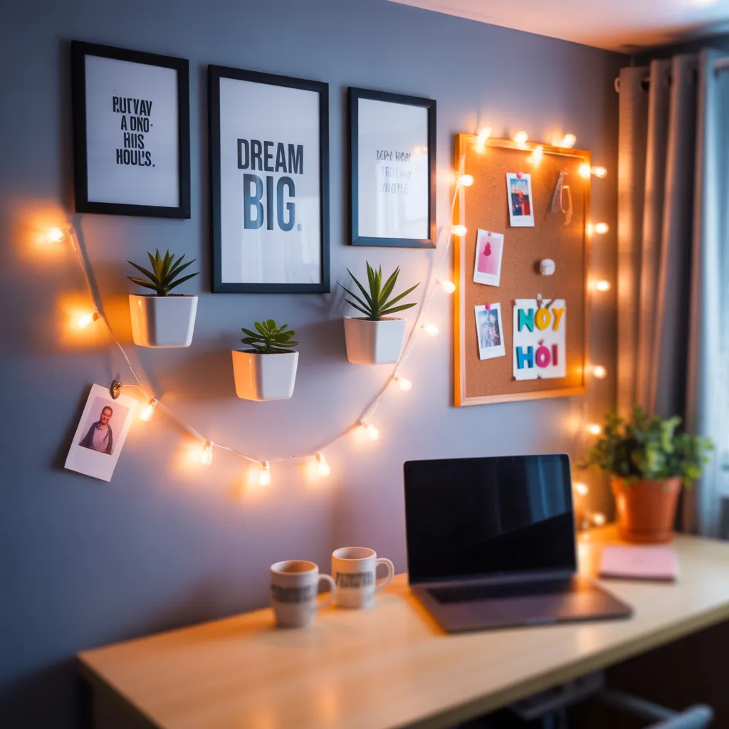 Place motivational quotes or personal memories in stylish frames or via wall decals. These serve as daily reminders of your goals and special moments, making your dorm feel truly yours.