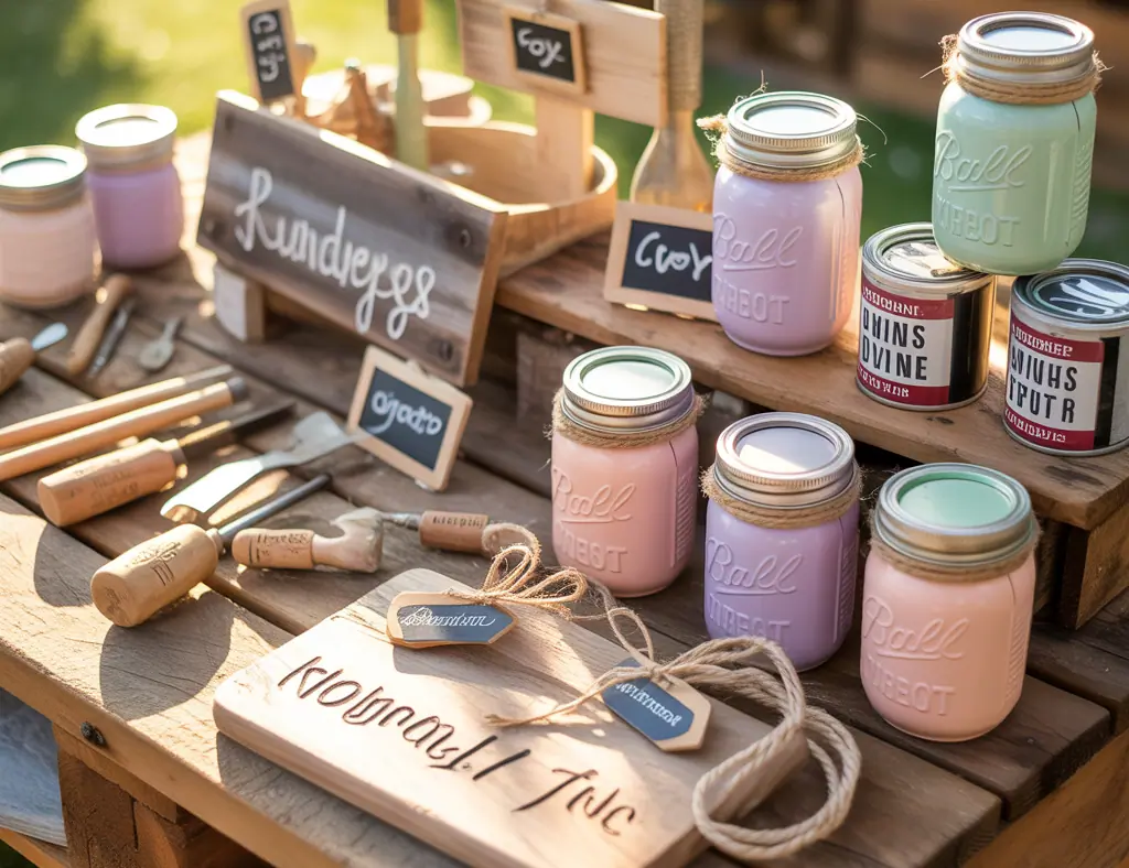 - Rustic: kraft tags, twine, burlap accents, mason jars.