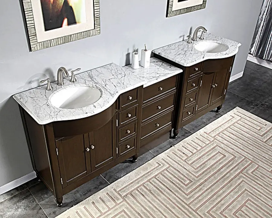 Let’s say your plumbing is misaligned, your dimensions are odd, or something else. In that scenario, think about a bespoke build. However, anything between 48 and 84 inches will provide you with the room you need for two basins.