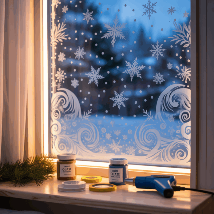 - Frost spray or frosted glass paint — creates privacy and a soft winter look without permanence.